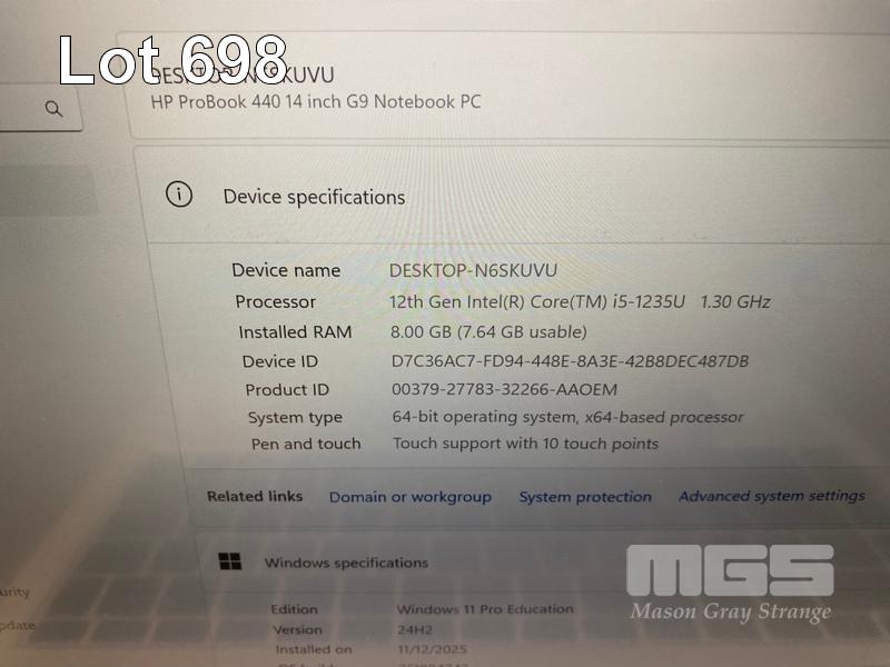 LAPTOP, HP PROBOOK 440 G9, CORE i5 1235U (12TH GEN) @ 1.3GHz, 8GB DDR4 RAM, 256GB NVMe M.2 SSD, 14" TOUCHSCREEN (1920x1080), INTEL UHD GRAPHICS, Wi-Fi, BLUETOOTH, WINDOWS 11 PRO EDUCATION INSTALLED & POWER SUPPLY (NOTE: SPOTS ON SCREEN, MINOR DAMAGE TO CASING, MARKS ON SCREEN) S/N:5CD2418B5L