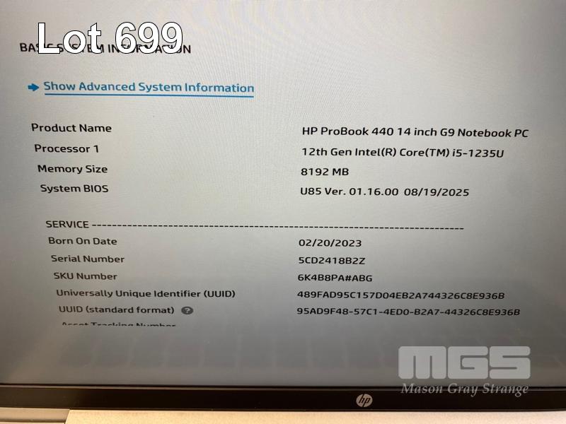 LAPTOP, HP PROBOOK 440 G9, CORE i5 1235U (12TH GEN) @ 1.3GHz, 8GB DDR4 RAM, 256GB NVMe M.2 SSD, 14" TOUCHSCREEN (1920x1080), INTEL UHD GRAPHICS, Wi-Fi, BLUETOOTH, WINDOWS 11 PRO EDUCATION INSTALLED & POWER SUPPLY (NOTE: SPOTS ON SCREEN, MINOR DAMAGE TO CASING) S/N:5CD2418B2Z