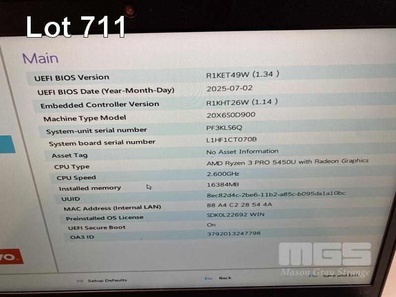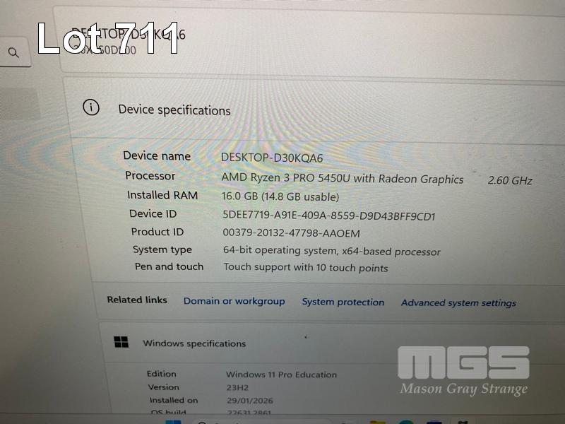 LAPTOP, LENOVO THINKPAD L14 Gen2, TYPE 20X6, AMD RYZEN 3 PRO 5450U @ 2.6GHz, 16GB DDR4 RAM, 256GB NVMe M.2 SSD, 14" TOUCHSCREEN (1920x1080), Wi-Fi, BLUETOOTH, WINDOWS 11 PRO EDUCATION INSTALLED (NO USB-C POWER SUPPLY) (NOTE: DAMAGE TO CASING, MARKS ON SCREEN) S/N:PF3KLS6Q