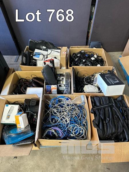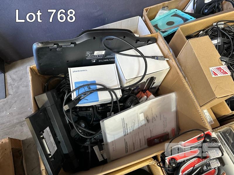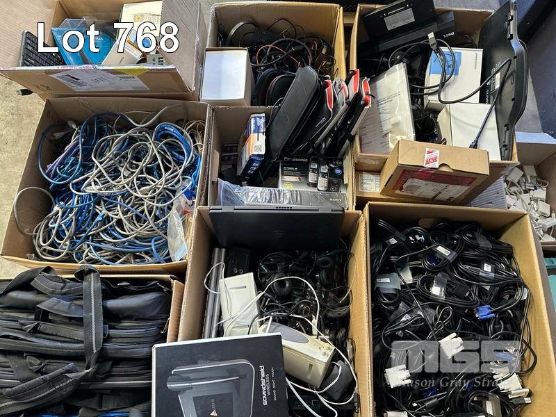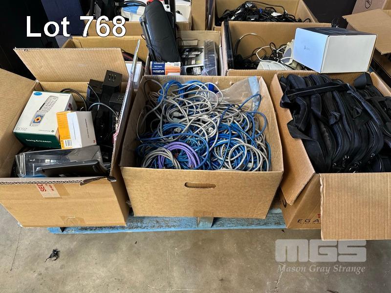 1 x PALLET LOT ASST CABLES, LAPTOP BAGS, NEWORK CABLES, HEADSETS, DIGITAL VOICE RECORDERS, ETC