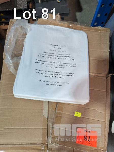 20 X KING SINGLE FLAT SHEETS. 2,000 X 2,600 MM. 100% COTTON SATEEN / 400TC. WHITE.