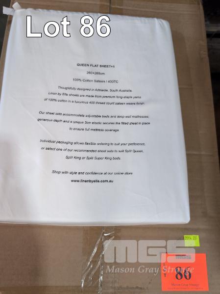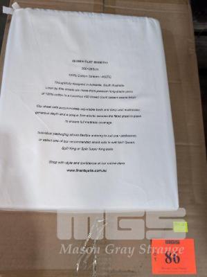 20 X QUEEN FLAT SHEETS. 2,600 X 2,650 MM. 100% COTTON SATEEN / 400TC. WHITE.