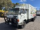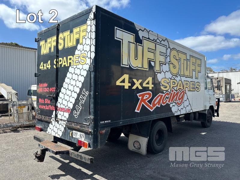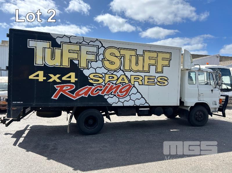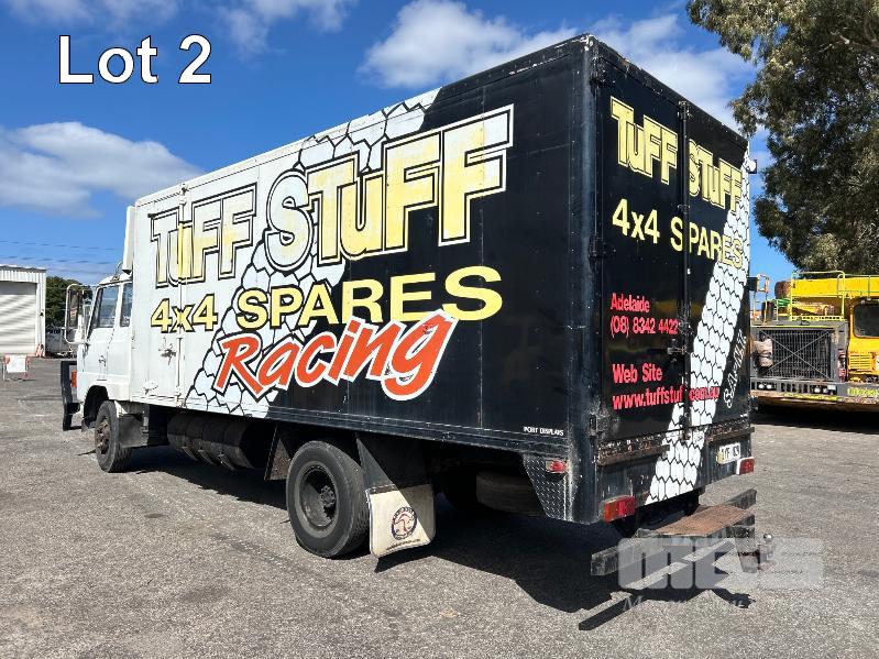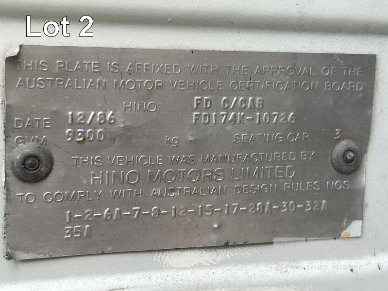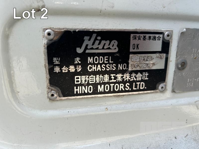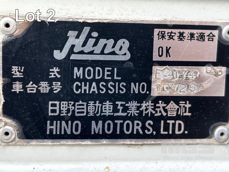 1986 HINO FD-174 4x2 PANTEC CAR TRANSPORTER REG: UYF 829 VIN: 10726 ENG: 174776 ODO: 508,600kms SHOWING GVM: 9,300kg GCM: 15,000kg ECONO DIESEL ENGINE 6 CYLINDER, MANUAL TRANSMISSION, SPRING SUSPENSION, 8.25 R16LT 2 DOORS, 3 SEAT, BULL BAR, DRIVING LIGHTS, TOW BALL SPARE TYRE & UNDER TRAY TOOL BOX ELEC WINCH MOUNTED IN PANTEC & REMOVABLE LOADING RAMPS PANTEC FITTED WITH SIDE ACCESS DOOR INSULATED BODY SIZE: LENGTH: 5500mm WIDTH: 2300mm HEIGHT: 2100mm KEY #11 (WITH PAPERS, WITH 1 KEY/S)