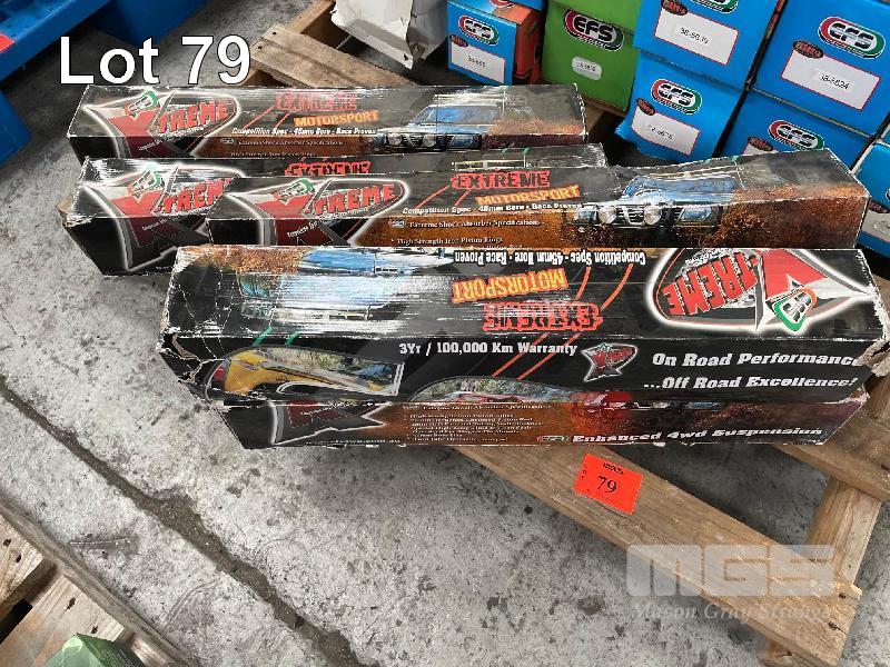 EFS XTR SHOCK ABSORBERS INCLUDING 2 x EFS37-6001 REAR 80/100# 2-3" LIFT RRP $206.00/UNIT 10 x EFS37-6002 XTR FRONT 100# IFS 50mm LIFT RRP $206.00/UNIT 4 x EFS37-6003 XTR REAR 200# 100# IFS 50mm LIFT RRP $196.00/UNIT 2 x EFS37-6007 XTR REAR GQ/GU/TOYOTA 79# 50-75mm LIFT RRP $206.00/UNIT 2 x EFS37-6009 XTR REAR FORD RANGER / BT50 RRP $196.00/UNIT