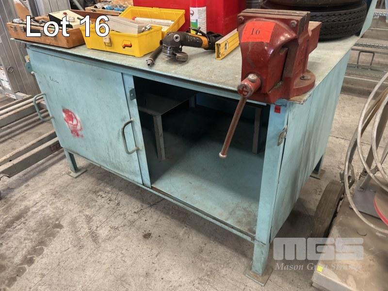 WORKSHOP BENCH, PLATE TOP STEEL CONSTRUCTION, 2 x SLIDING DOORS, BACK PLATE, BLUE 1500 x 1000 x 900mm (h0