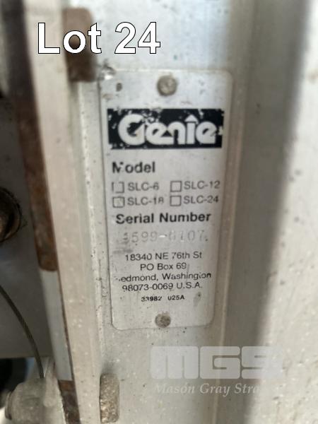 BUILDERS TELESCOPIC MATERIAL LIFT GENIE SUPER LIFT, CONTRACTOR MOD: SLC-18 MAX LIFT WEIGHT: 295kg MAX LIFT HEIGHT: 5m MOBILE