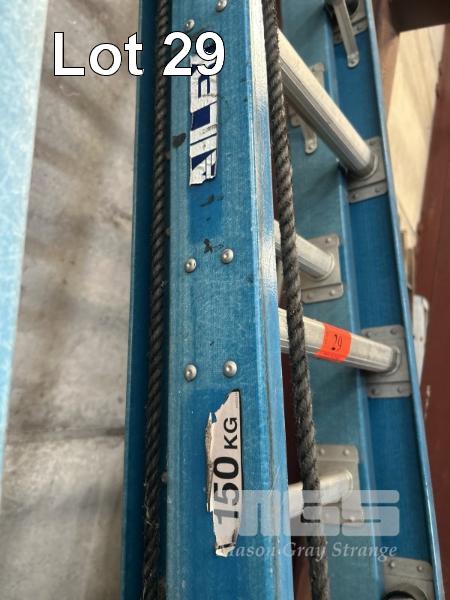 EXTENDABLE LADDER, BAILEY INDUSTRIAL, FIBREGLASS & ALLOY CONSTRUCTION 150kg LOAD RATE 3700 TO 6000mm (H)
