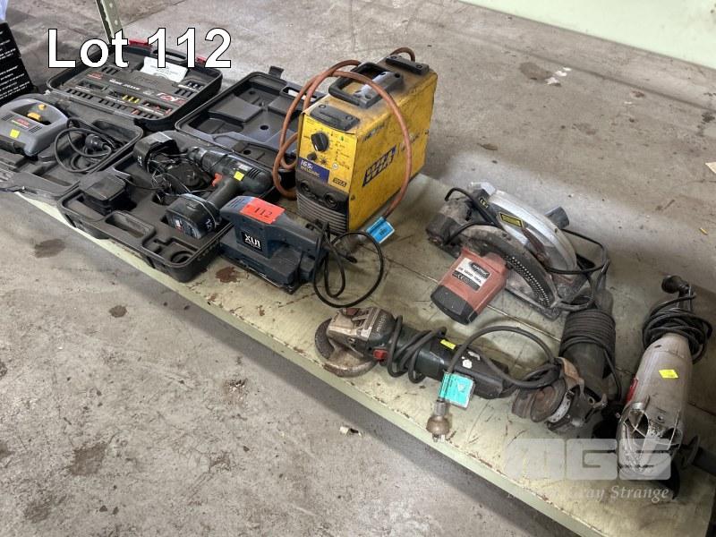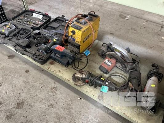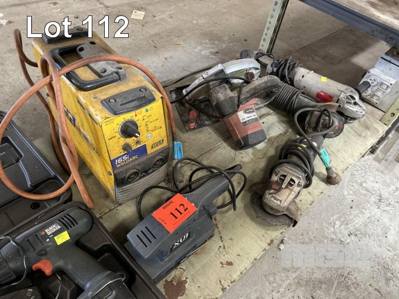 ASSORTED POWER TOOLS, RYOBI JIGSAW, B&D CORDLESS DRILL, XUI SHEET SANDER, MATRIX CIRCULAR SAW, 9", 3 x AUSSIE GRINDERS, 1651 WELDER WIA, NO LEADS 240V