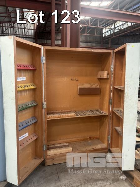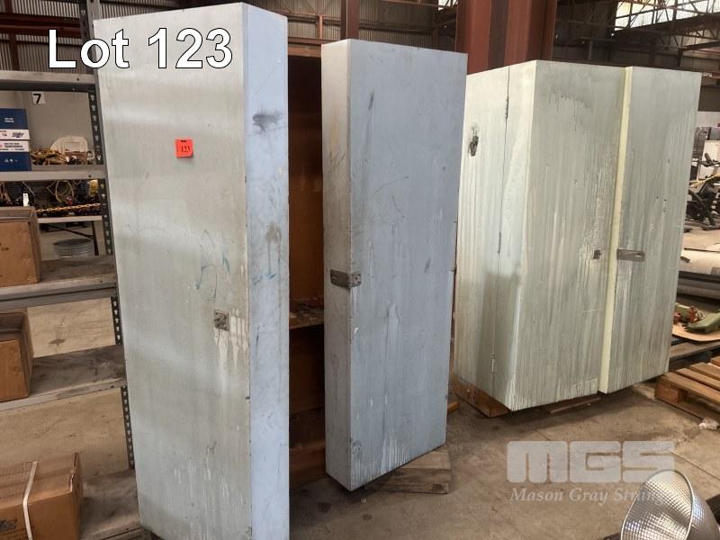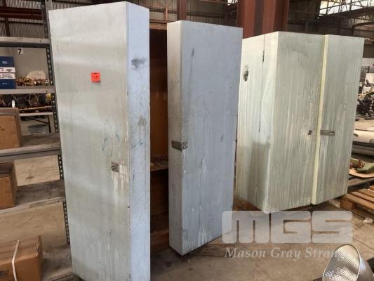 2 x STORAGE CABINETS, 1200 x 570 x 1970mm (H), 2 DOOR, TIMBER