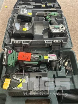 HITACHI TEK DRILL &, ANGLE CORDLESS DRILL WITH BATTERIES & CHARGERS,