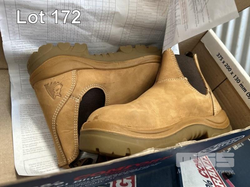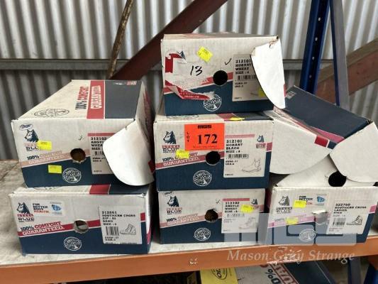 6 x PAIRS STEEL CAP WORK BOOTS, STEEL BLUE ASSORTED COLOURS SIZE: USA4