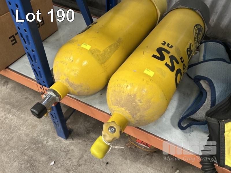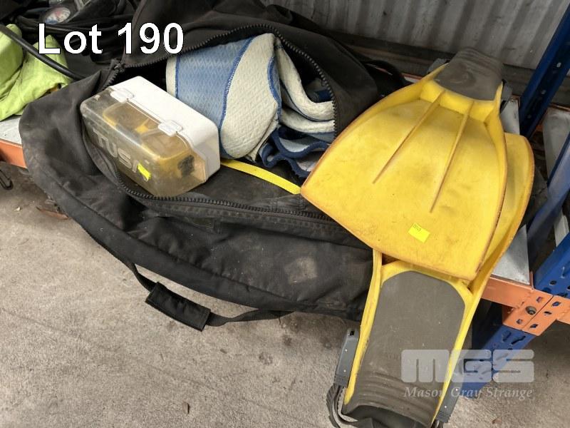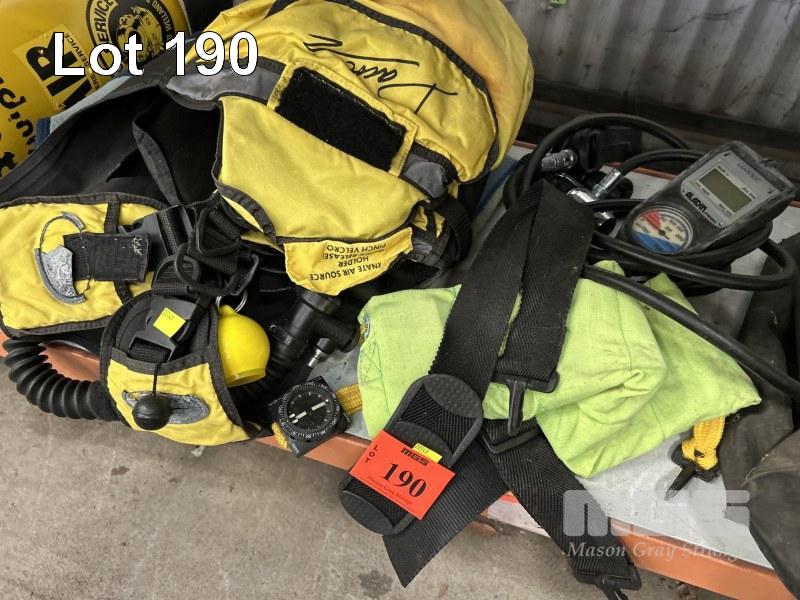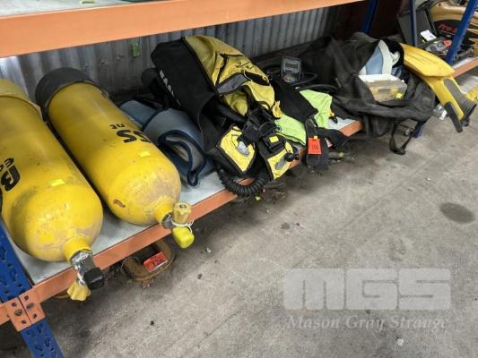 SCUBA DIVING SET INCLUDING TANKS, BC, REG UNIT, WEIGHT BELT, FINS, ETC 1 x SHELF