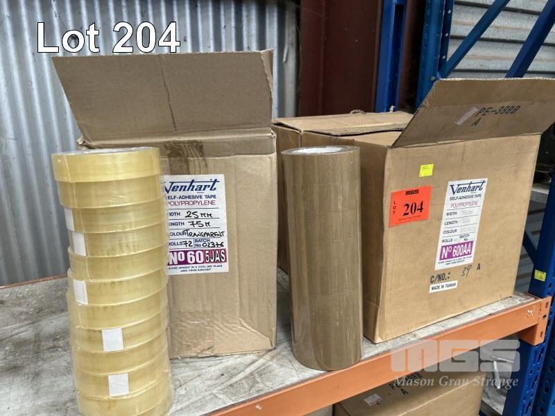 48 x ROLLS ADHESIVE TAPE, BROWN POLY PROP, 36mm & 72 x ROLLS CLEAR POLY PORP, 25mm