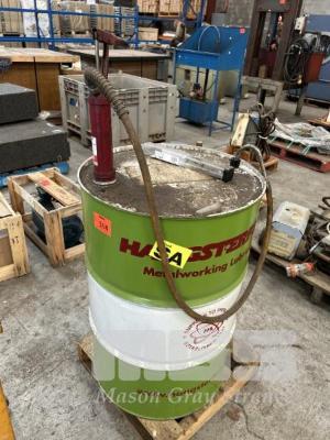 METALWORKING LUBRICANT, HANGSTERFERS 5040 PART 44 GALLON DRUM, APPROX 1/3 FULL WITH DRUM PUMP
