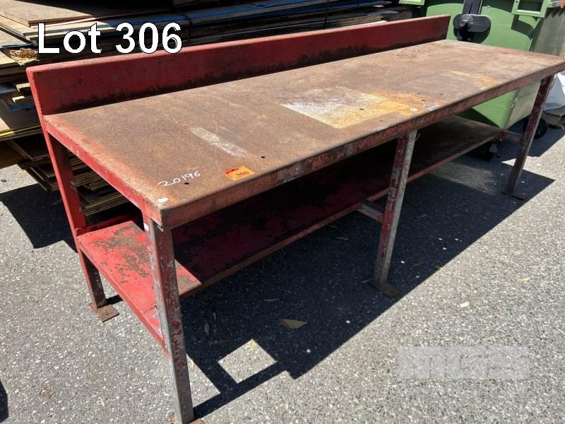 WORK BENCH, 2650 x 850 x 920mm (H), HEAVY DUTY STEEL WITH BACK STOP