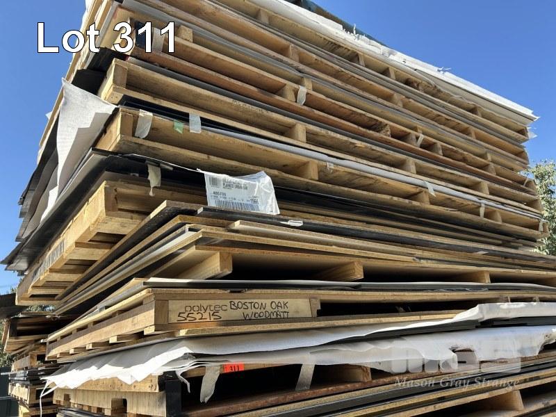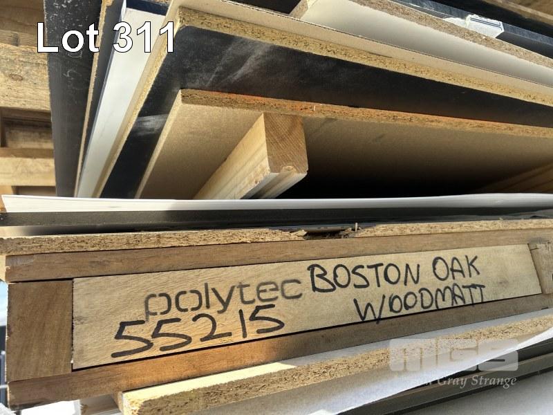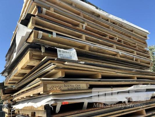 SYNTHETIC LAMINATED BOARDS, SCHELLING, POLYTEC ASSORTED COLOURS INCLUDING OAK, ANTICO, SPINAFEX, ETC VARIOUS SIZES & THICKNESSES, SOME FULL SHEETS @ 3700 x 1830mm WITH ASSORTED HD & CHIP BOARD 9 x PALLETS (NOTE: BUYER MUST TAKE ALL BOARDS & PALLETS)