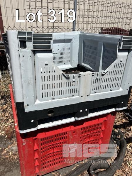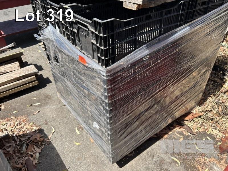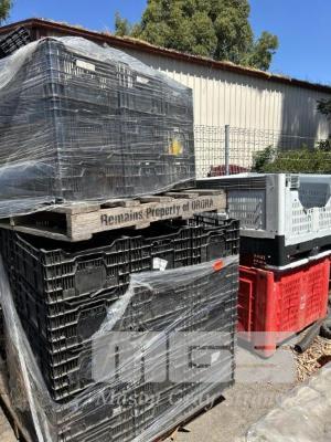 49 x BLACK POLY CRATES, 400 x 600 x 230mm(H) & 2 x POLY BINS RED & GREY, 1120 x 1120 x 750mm (H)