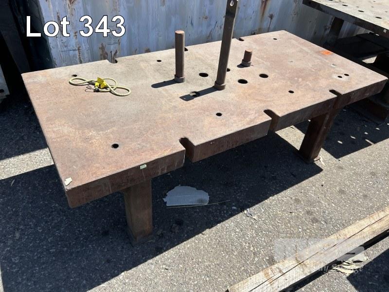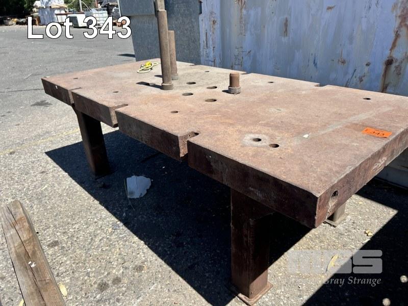 MANDREL TABLE, SUIT JIGGING FOR ENGINEERING/FABRICATION HEAVY DUTY PLATE STEEL TOP 100mm THICK WITH GRID HOLES & BARS 1830 x 870 x 600mm (H)