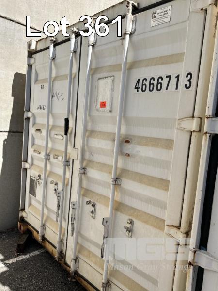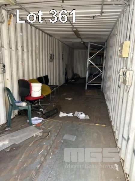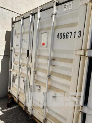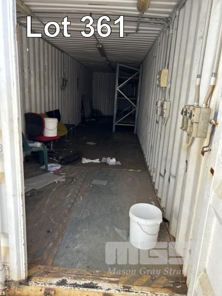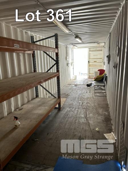 40' SHIPPING CONTAINER, WHITE NO: 466713 WATER TIGHT FITTED WITH LIGHTING, POWER OUTLETS, SHELVING, ROOF TOP VENT & CONTENTS