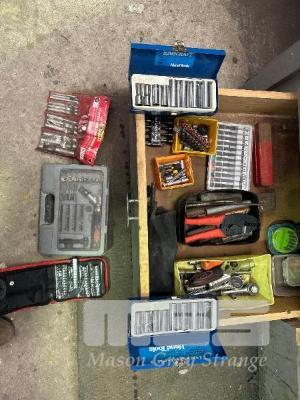 1 x DRAWER OF TOOLS INCLUDING RATCHETS, DRIVER SET, SOCKET ADAPTORS, MINI DRIVERS, K/C LONG SERIES SOCKETS, HOLE PUNCH SET, ETC