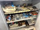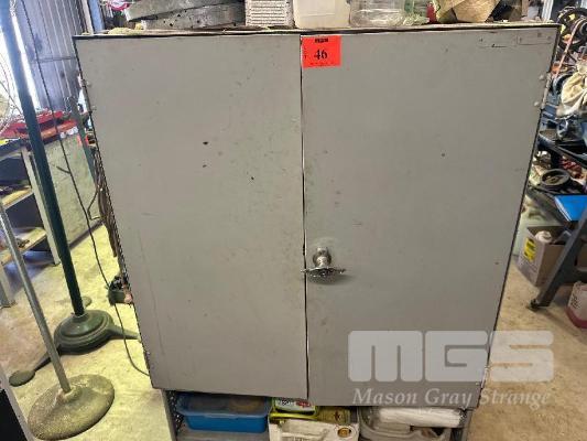 STEEL CABINET, 2 DOOR & CONTENTS INCLUDING NEEDLE & GP DRILL BITS, TRAPS, DIES, LUBES, GLUES, ETC