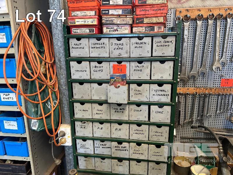 35 DRAWER METAL PARTS UNIT & FASTENERS, WASHERS, BOLTS, ETC & 12 x GRAB KITS