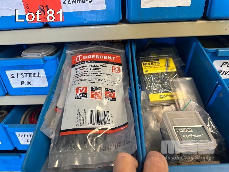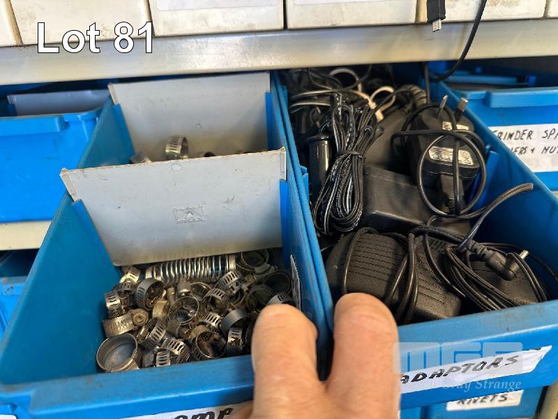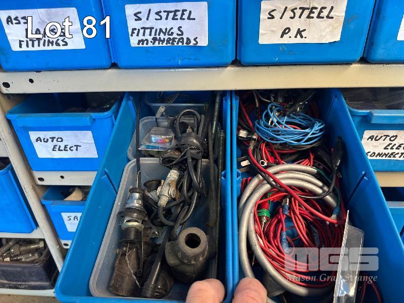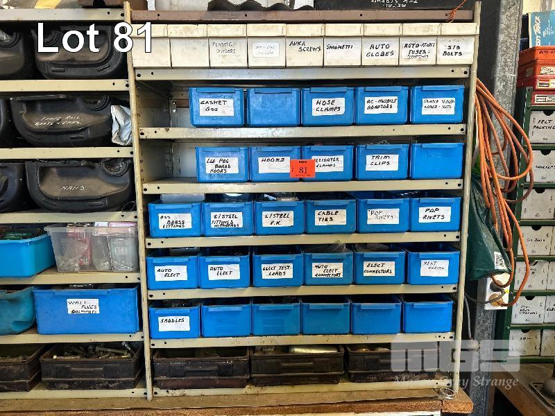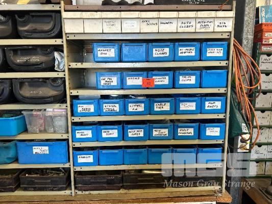 36 x PVC TRAYS OF AUTOMOTIVE PARTS, ELECTRICAL FASTENERS, BRASS SADDLES, ETC & 3 x BAKER TRAYS OF BOLTS