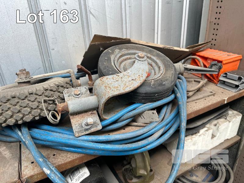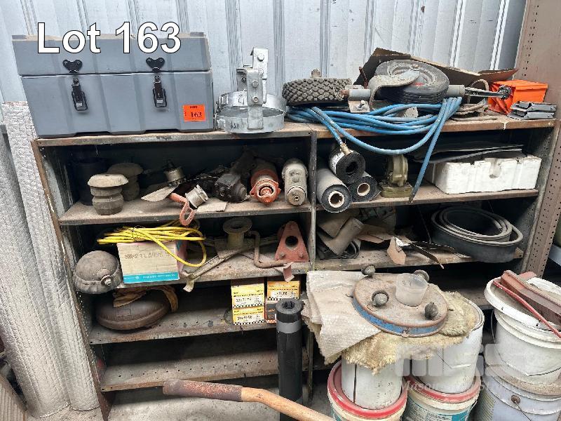 SHELF UNIT & CONTENTS INCLUDING AUTO PARTS, CONVERTER, STARTERS, STEERING BOX, JOCKEY WHEELS, WHEEL CHOCKS, ETC