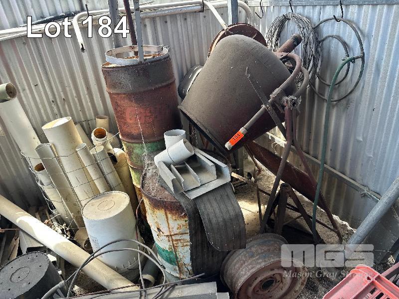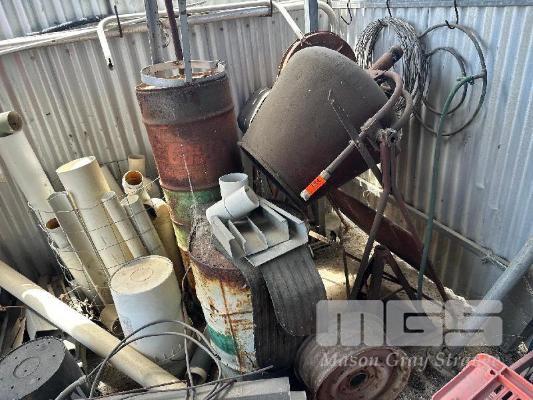 CEMENT MIXER, ELECTRIC, PVC PIPE, COPPER PIPE, CHAIN, STEPS, ETC
