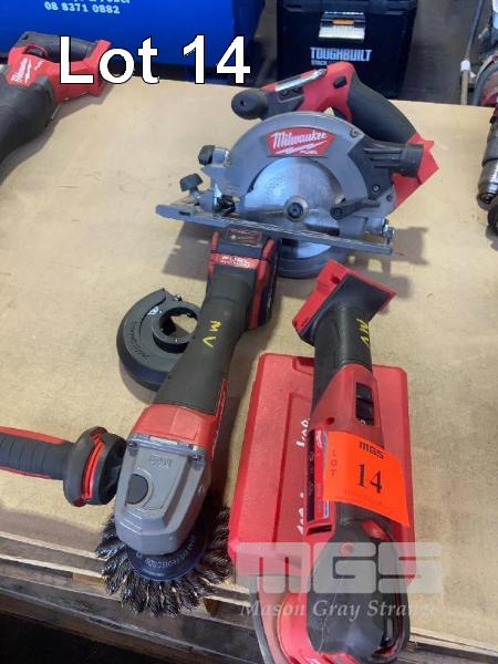 MILWAUKEE 18V MULTI TOOL, ANGLE GRINDER, CIRCULAR SAW & 1 x BATTERY