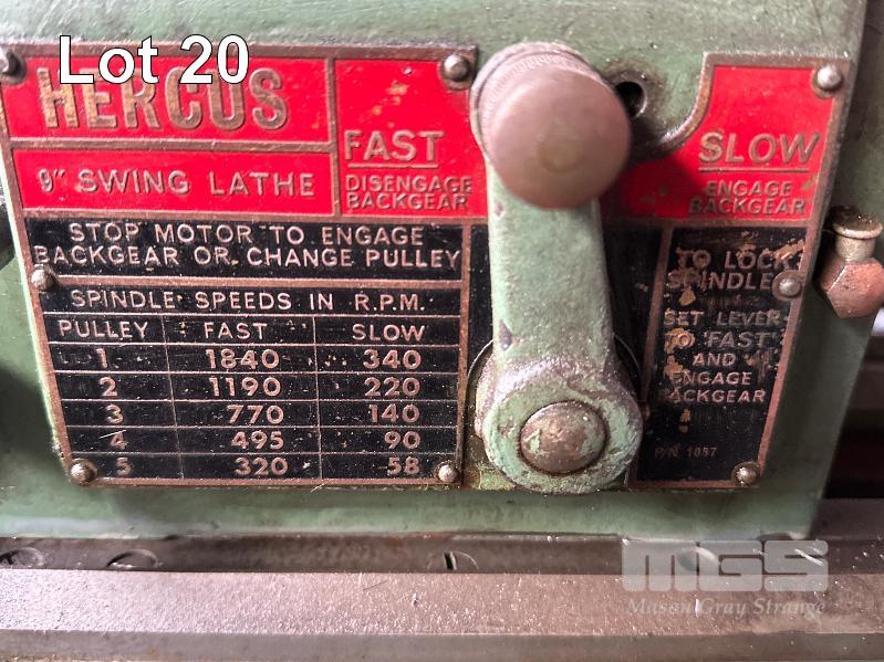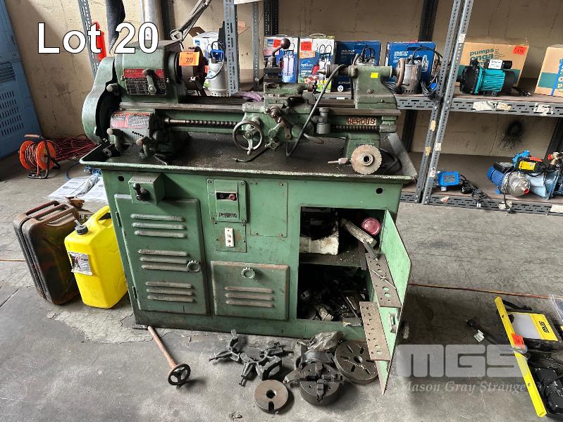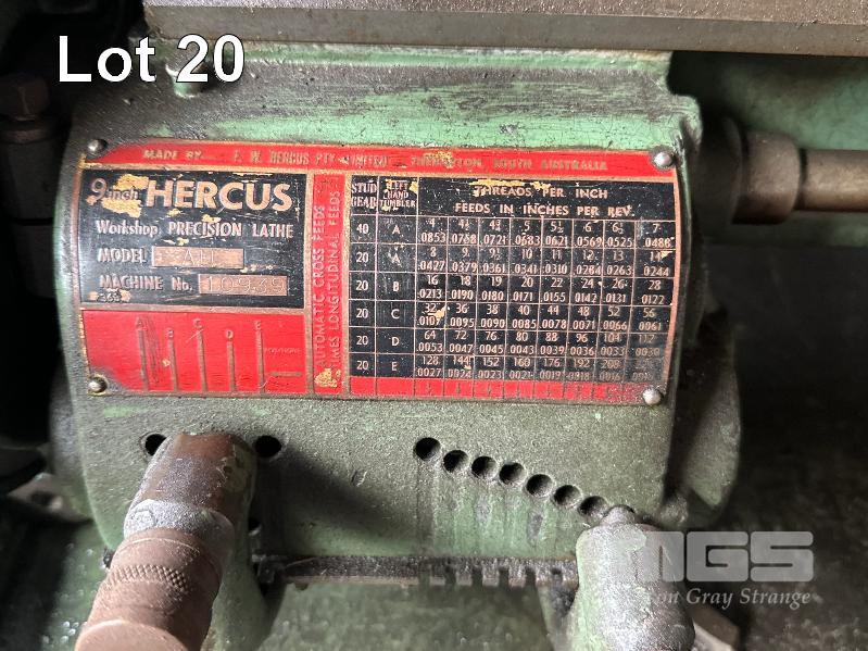 PRECISION LATHE, HERCUS MOD: A11 9" SWING 240V WITH STEADIES, 2 x 4 JAW CHUCKS, FACE PLATE, 24 TOOTH INDEX HEAD & TOOLING