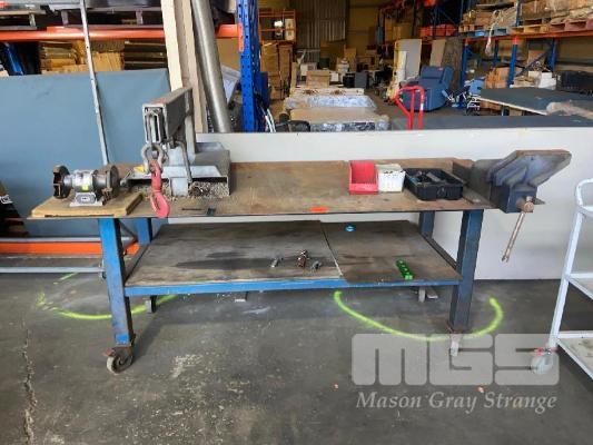 PLATE TOP WORK BENCH, 2400 x 1000mm WITH 150mm OFFSET VICE MOBILE