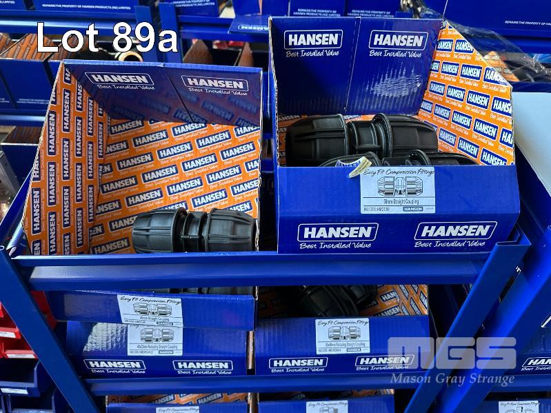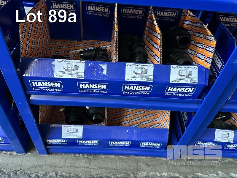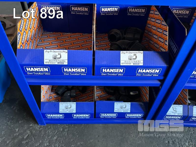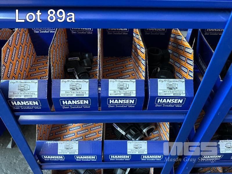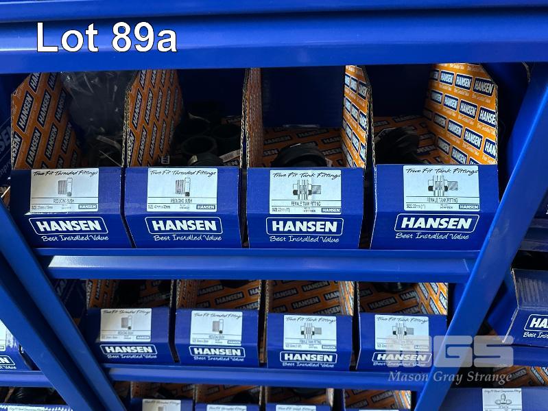 LARGE QUANTITY HANSEN POLY IRRIGATION FITTINGS INCLUDING PHILMAC STYLE SCREW ON, 3/4 (19mm) -2" (50mm) TEE'S, ELBOWS, TANK FITTINGS, ETC, (DOES NOT INCLUDE RACKS)