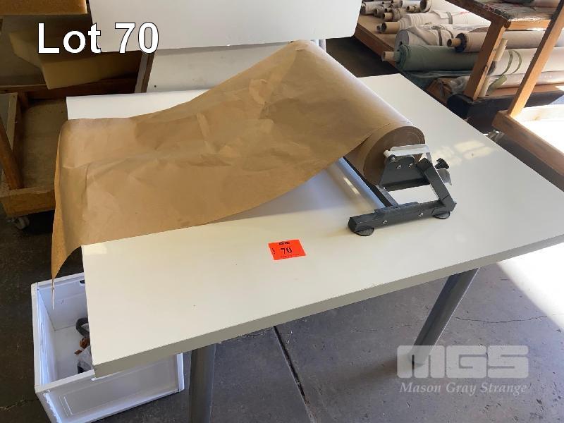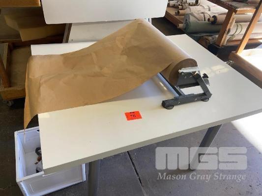 TABLE, WHITE LAMINATE, 1200 x 1000mm & 500mm PAPER DISPENSER