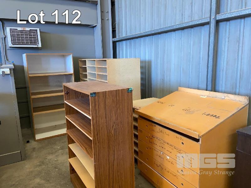 PLAN BENCH, SIDE CUPBOARD, MULTI SHELF UNIT, MOBILE BASE 2 x GP SHELVES WITH STEEL 4 DRAWER FILE CABINET