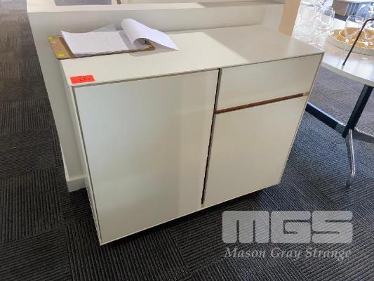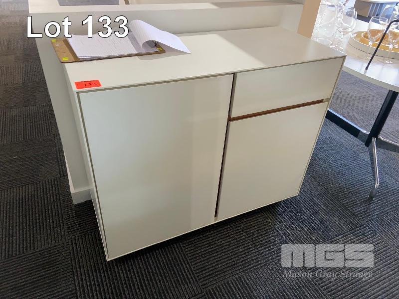 WHITE TIMBER CUPBOARD, 2 DOOR, 1 DRAWER 1100 (L) x 460 (D) x 900mm (H)