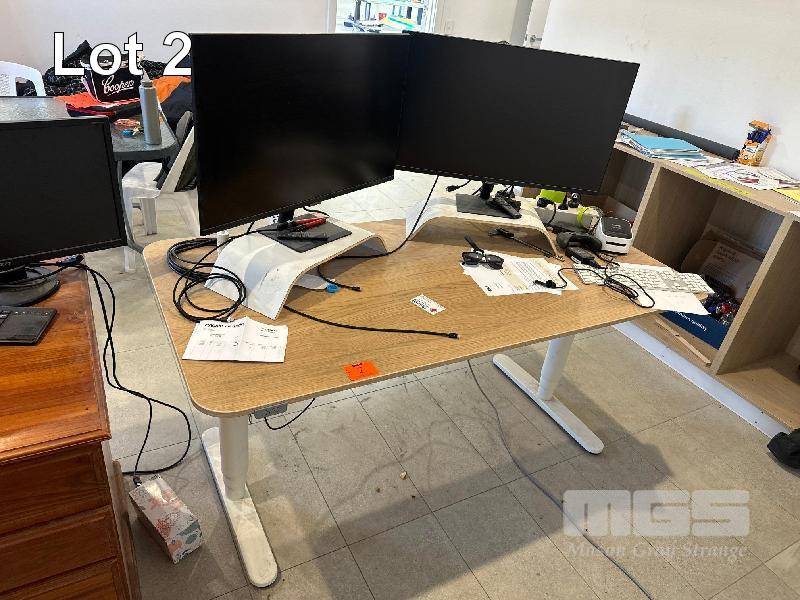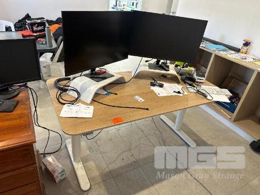 ELECTRIC RISE & FALL DESK, 1600 x 800mm WITH 2 x SAMSUNG MONITORS, 32"