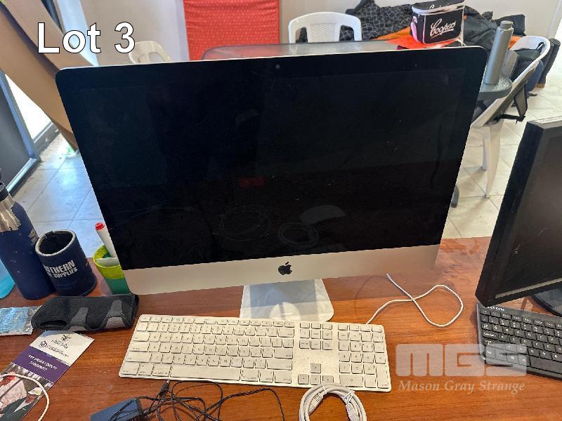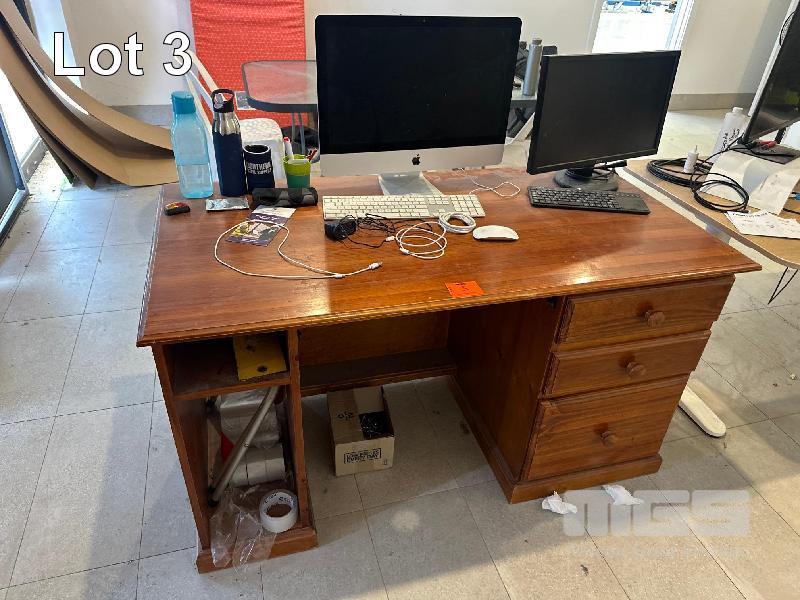 TIMBER DESK, 1400 x 720mm, 3 DRAWERS WITH APPLE MONITOR, KEYBOARD & MOUSE