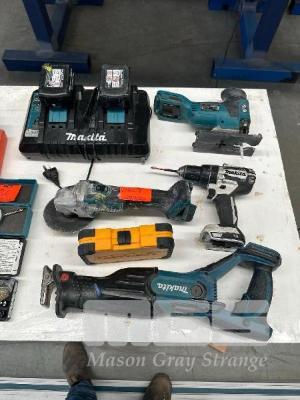 MAKITA 18V TOOLS INCLUDING RECIPRO SAW, ANGLE GRINDER, JIGSAW, DRILL, 3.0 AH & 5.0 AH BATTERY & BATTERY CHARGER