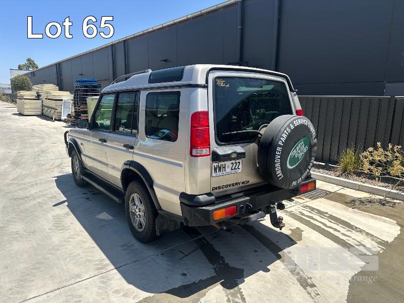 2001 LAND ROVER DISCOVERY SERIES 2 WAGON 4x4 REG: WWH 222 (SA) VIN: SALLTGM931A723476 ODO: 170,416kms SHOWING 5 CYLINDER 2.5 LITRE, 4 SPEED AUTOMATIC TRANSMISSION, DIESEL TD5, WHITE GOLD METALLIC DUCO, 4 DOORS, 7 SEAT, 4x4 AIR CON, CENTRAL LOCKING, CRUISE CONTROL, TOW BAR, STEEL BULL BAR STEEL REAR BAR AIR BAG REAR SUSPENSION DUAL CLIMATE CONTROL RUNS AND DRIVES ROOF SUN FADED BRAKES FAULTY (BUYER WILL NEED TO TOW) (WITH 1 KEY/S, WITH OWNER'S MANUAL)