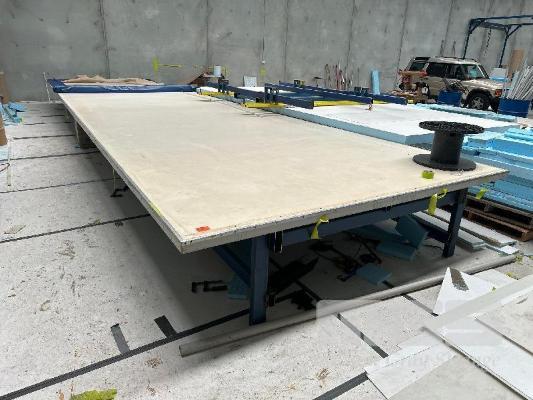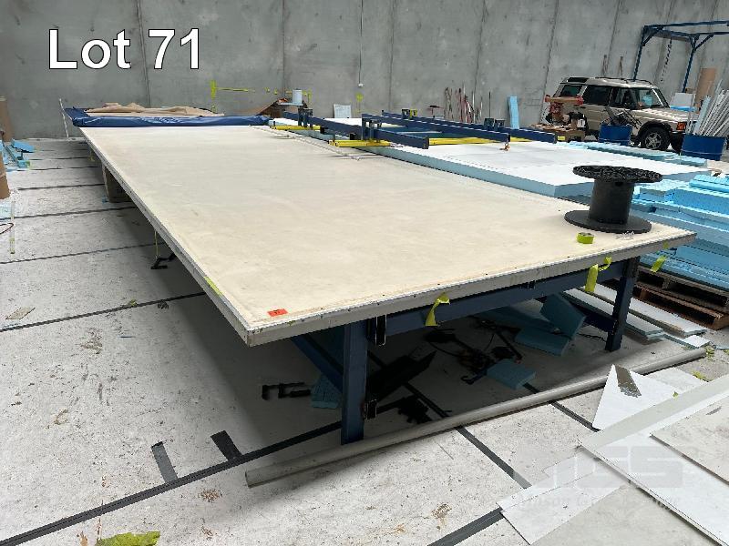 LARGE LAYOUT TABLE, 12m x 3.5m, STEEL TUBE FRAME (NOTE: BUYER TO DISMANTLE & REMOVE)