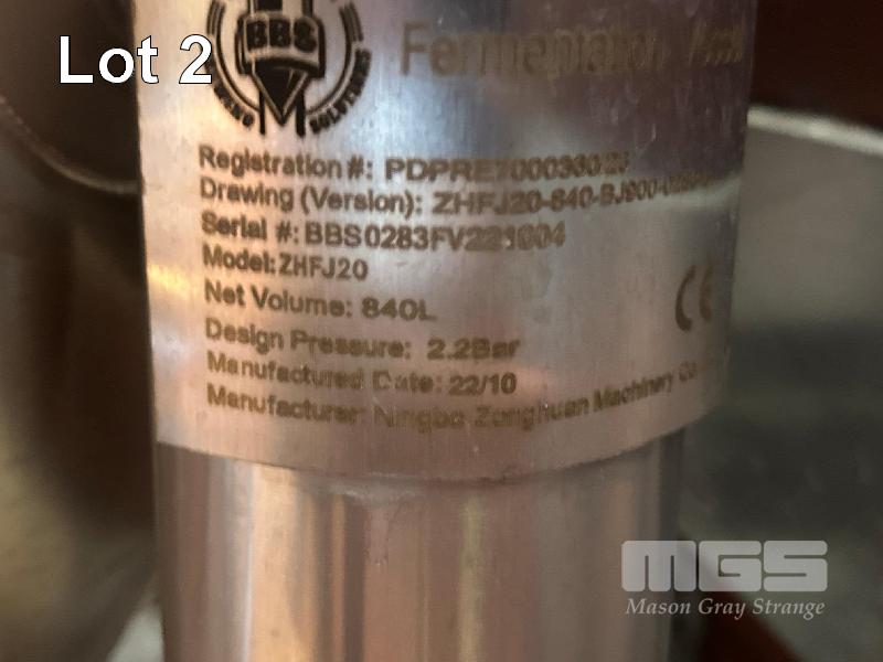 FERMENTATION VESSEL, BBS MOD: ZHFJ20 DOM: 10/2022 840 LITRE