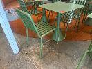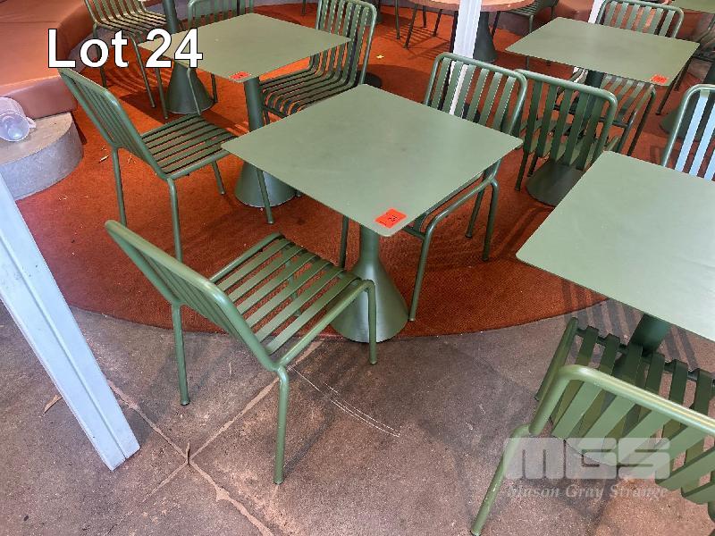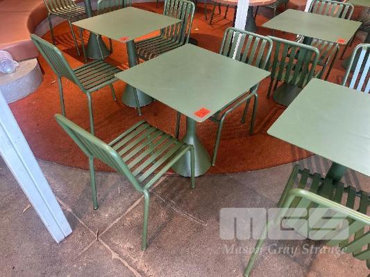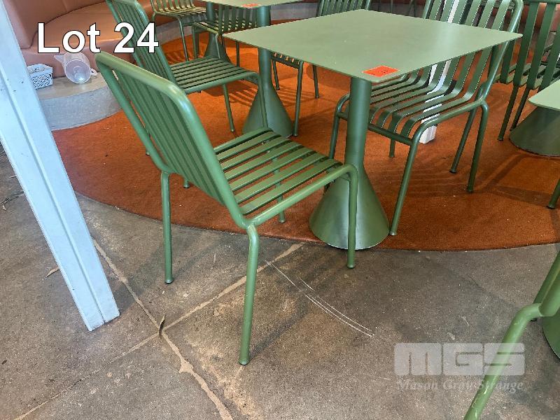 HAY CAFE TABLE, 650 x 650 x 740mm (H), STEEL FRAME & TOP, OLIVE GREEN, CONCRETE PEDESTAL BASE & 2 x HAY CHAIRS