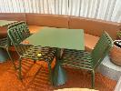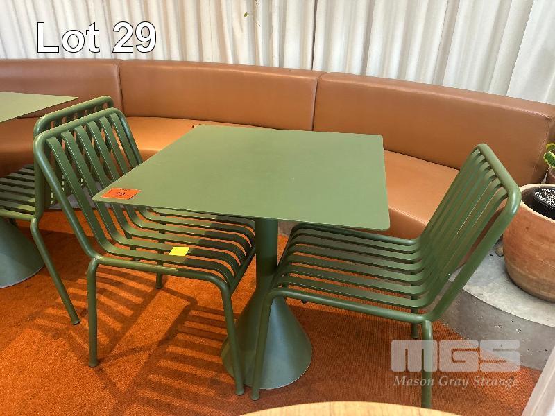 HAY CAFE TABLE, 650 x 650 x 740mm (H), STEEL FRAME & TOP, OLIVE GREEN, CONCRETE PEDESTAL BASE & 2 x HAY CHAIRS