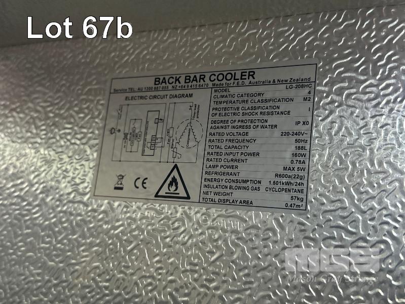 2 DOOR UNDERBENCH FRIDGE, FED MOD: LG-208HC CAPACITY: 188L 240V