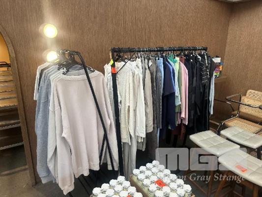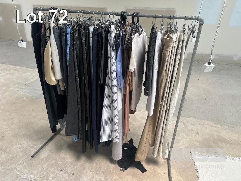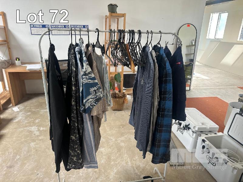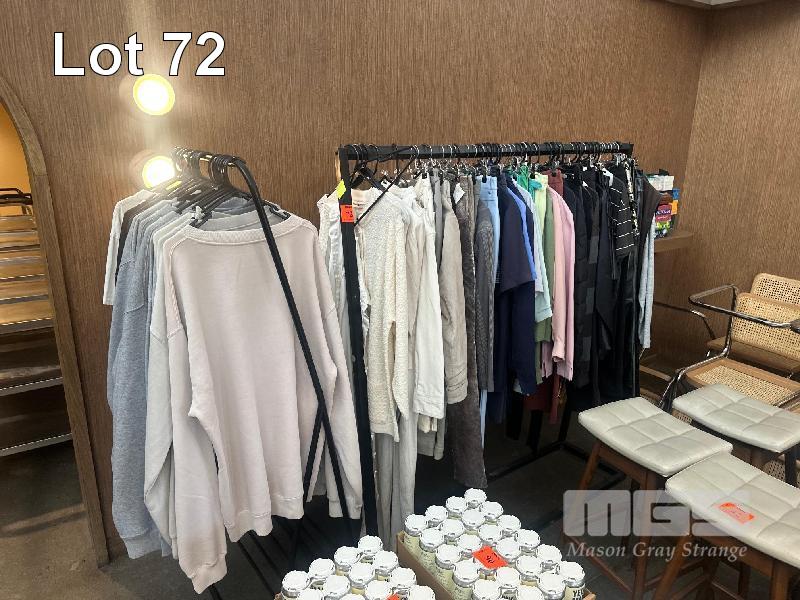 ASSORTED VINTAGE THRIFT CLOTHES & YELLOW MATTER MERCH, 3 x RACKS
