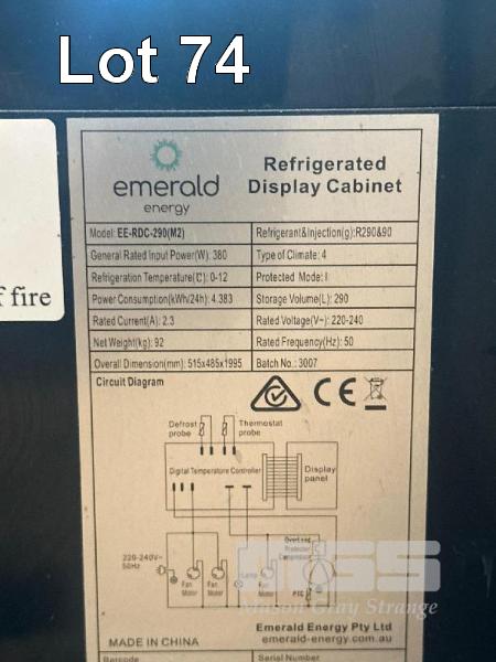 REFRIGERATED DISPLAY, EMERALD MOD: EE-RDC-290(M2) 4 WAY GLASS ILLUMINATED 290 LITRE 240V