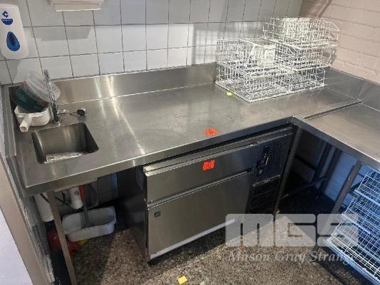 STAINLESS STEEL BENCH WITH HAND WASH BASIN & SPLASHBACK, 2100 x 700mm