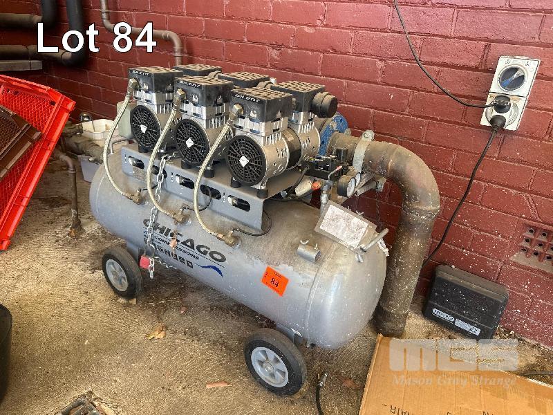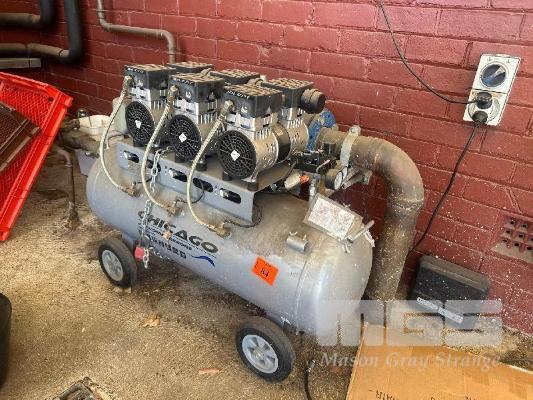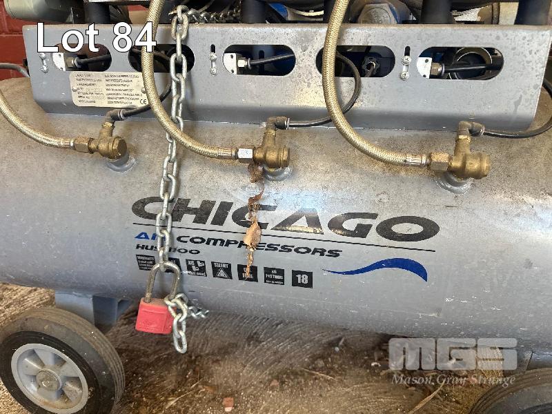 SILENCED AIR COMPRESSOR, CHICAGO AIR 6 CYLINDER 100 LITRE TANK 240V