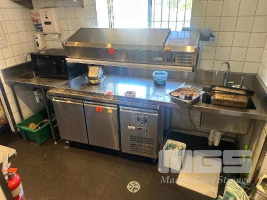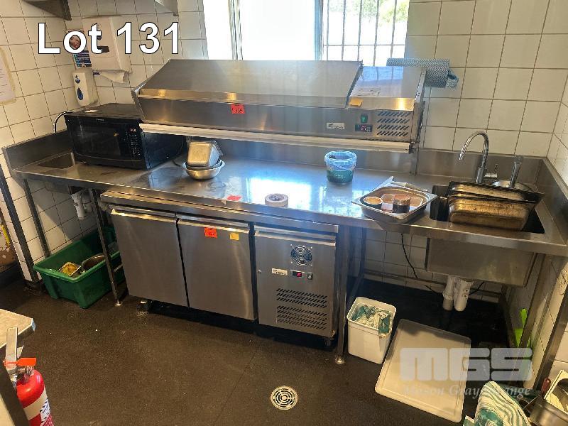 STAINLESS STEEL BENCH, 3000 x 700mm WITH 2 x HAND BASINS